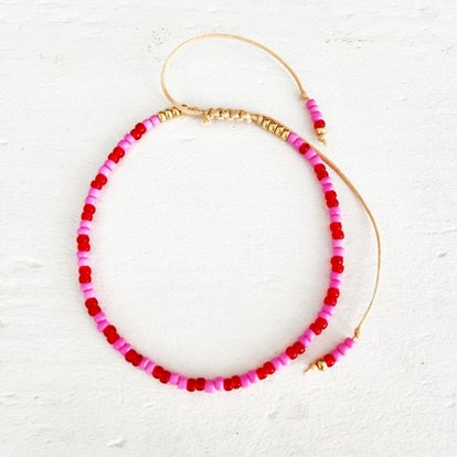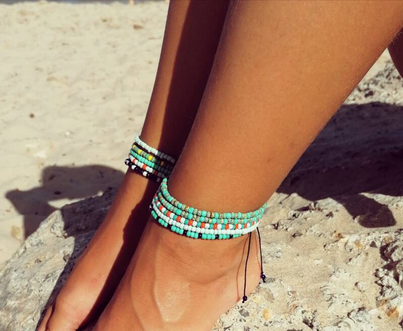 Enkelbandje, 2 strengen seed bead kralen en schuifknoop