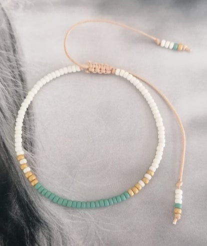 Enkelbandje van miyuki en seedbead kraaltjes,schuifknoopje