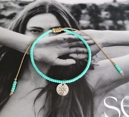 enkelbandje mintgroene miyuki kraaltjes met zon bedel