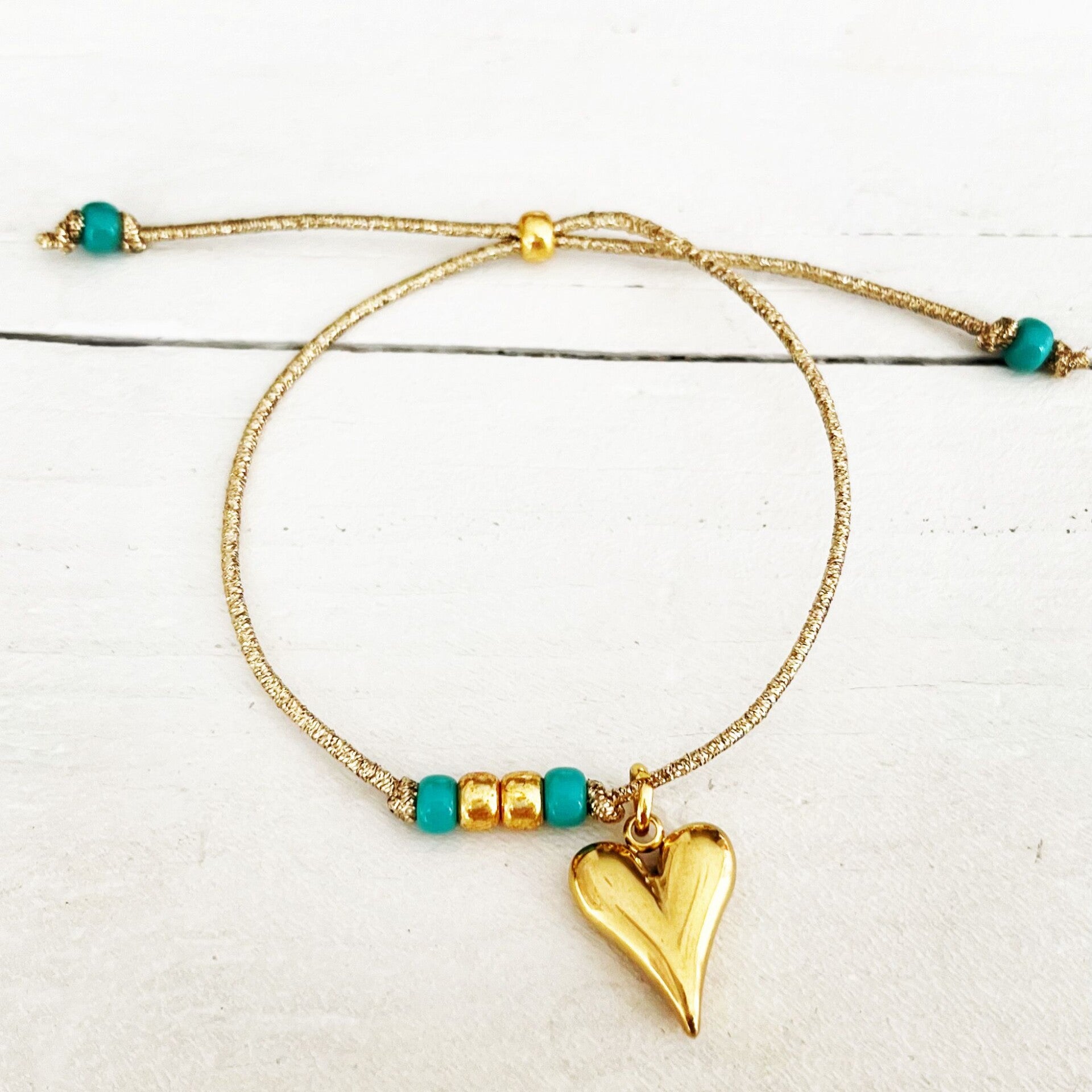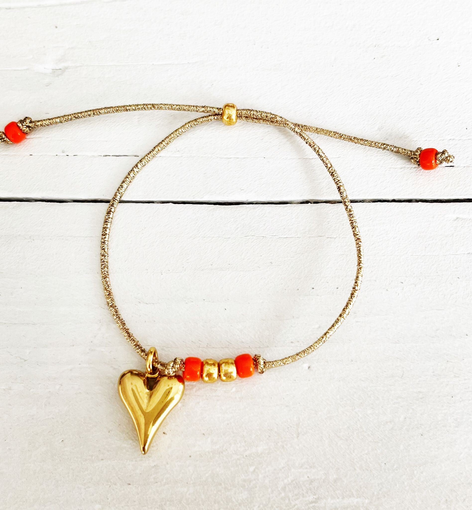 Stretchy armband met miyuki kralen in verschillende kleurtjes en goud kleurig hart bedel