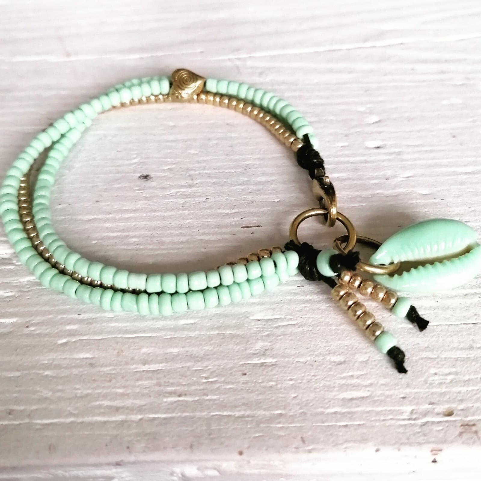 Seed bead kraal, mint en champagne kleur, 3 rijen met slotje