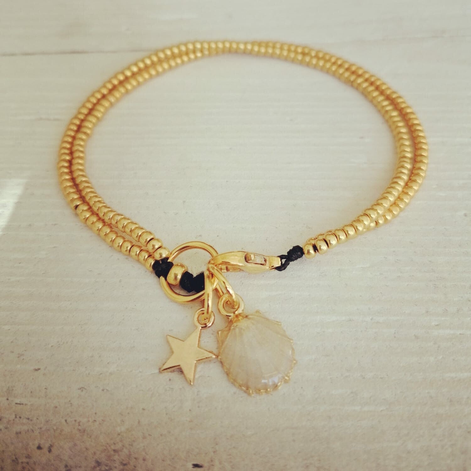 Met fijne goudkleurige seed bead kraaltjes en een slotje
