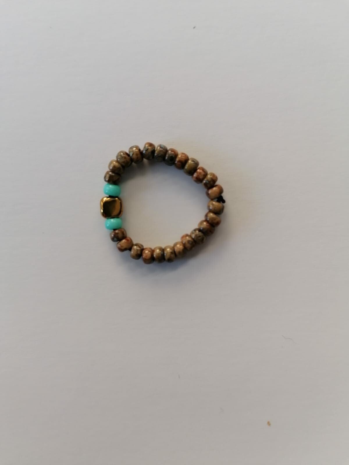 Elastisch ringetje van miyuki kralen, met goudkleurige kraal