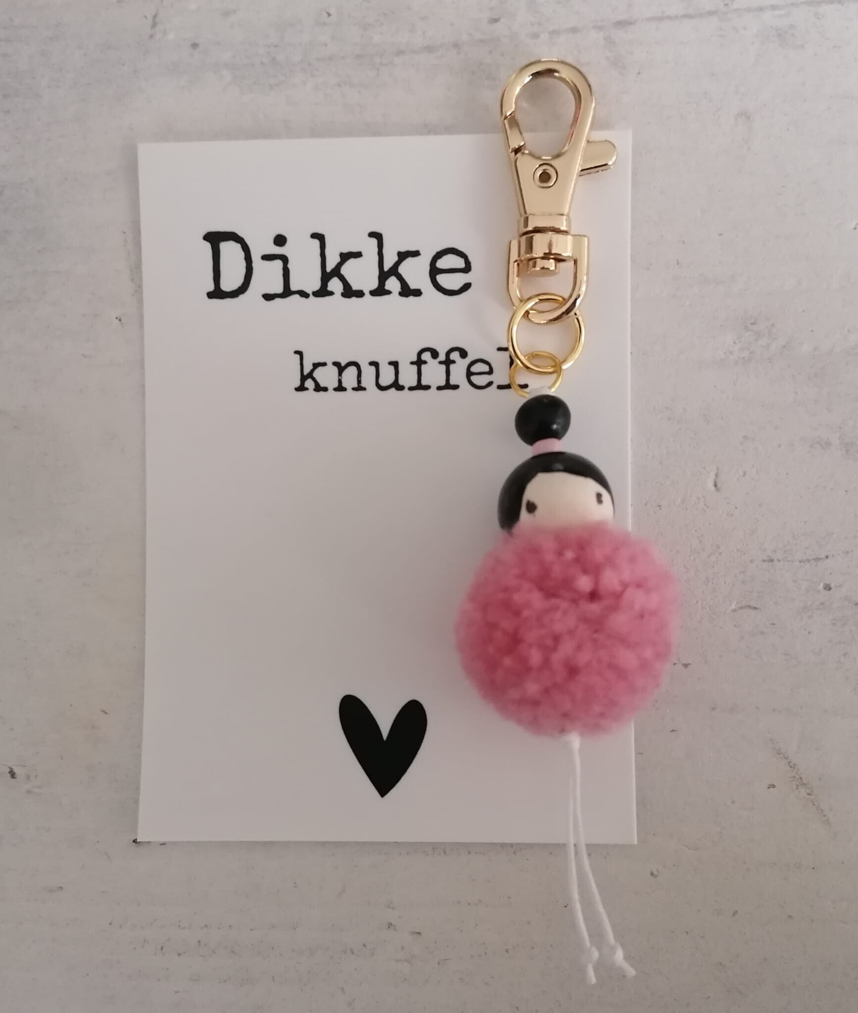 Gelukspoppetje en sleutelhanger (verkrijgbaar in goud of zilver kleur) in roze tinten, de poppetjes zijn met de hand gemaakt en zijn uniek, ook de roze tinten verschillen. Je kunt voorkeur op geven, dan zal er rekening mee worden gehouden!