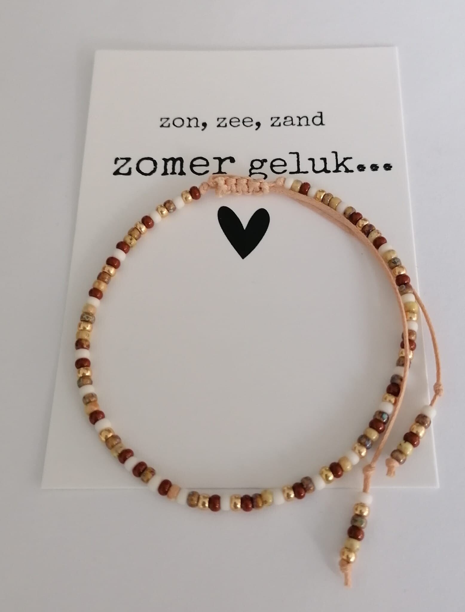Enkelbandje van miyuku kralen, op waxkoord met schuifknoopje.