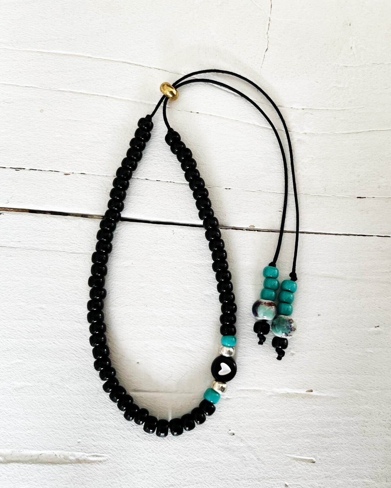 enkelbandje van miyuki kralen op waxkoord met schuifkraal