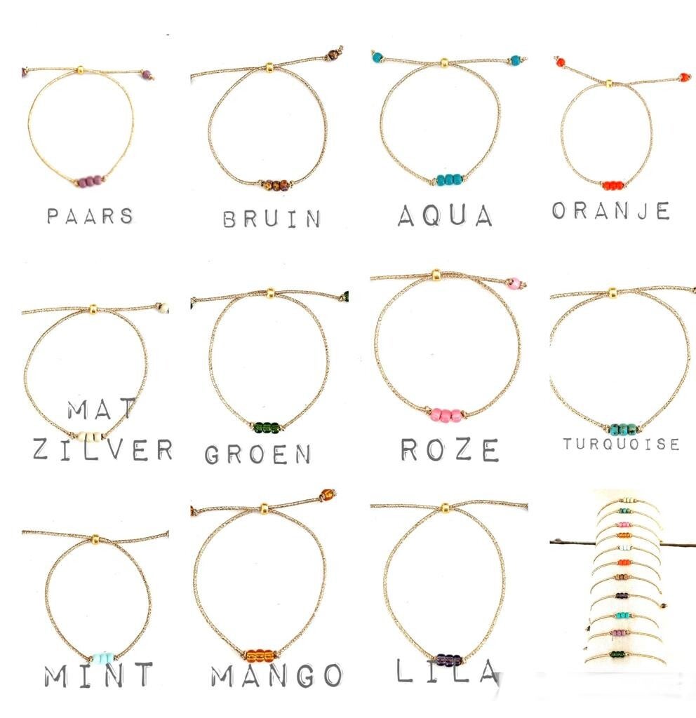 Goudkleurig armbandje met miyuki kraaltjes in verschillende kleuren verkrijgbaar
